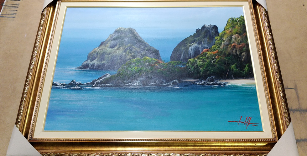 Pintura de marinha de Fernando de Noronha em óleo sobre tela - 70 cm X 50 cm. Quem já foi para este paraíso diz que é o Havaí brasileiro. Quadro vendido para José C. C. D. (São Paulo - SP).