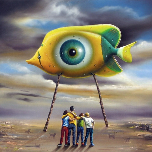 Linha de pinturas surreais onde são fundidos elementos como pessoas e animais em cenários como tempestades, desertos, arquitetura metafísica, enfim... Vários elementos se harmonizando em uma pintura em óleo sobre tela.