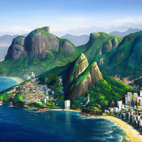 Obras de arte retratando o Rio de Janeiro são muito ricas, pois além do cenário natural maravilhoso que a cidade nos proporciona espetáculos da natureza com relevos e praias maravilhosas. Ter uma pintura com o Corcovado e o Cristo Redentor é para poucos, pois há uma complexidade em se conseguir toda a profundidade que temos que considerar para ficar uma pintura que faça justiça ao visual original. Como vemos nesta pintura em primeiro plano temos os dois, o Cristo e o Corcovado... Aplicando a profundidade... Lá no fundo aparecerá o Pão de Açúcar, dois ícones dessa cidade maravilhosa, desse povo maravilhoso que é o povo carioca!