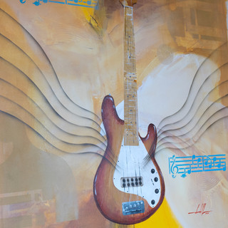 Junto com a pintura O Clarinete... Fiz mais duas de mesmas proporções, técnica e materiais. Um violão e um contrabaixo, na mesma temática, mesma paleta de cores e mesma sinergia. Conheça abaixo.